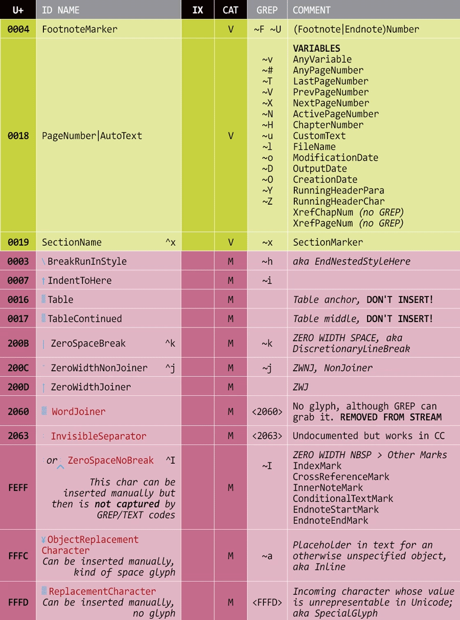 For a more comprehensive view, see our InDesign special characters reference.