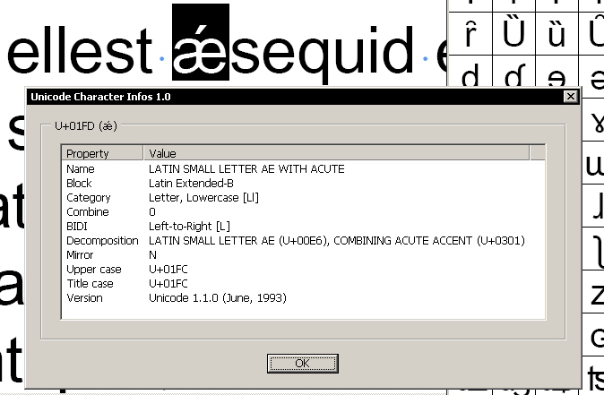 So, what our sample script does is that it queries a Web service and displays a number of Unicode details about any single character that the user selects in the active Document: