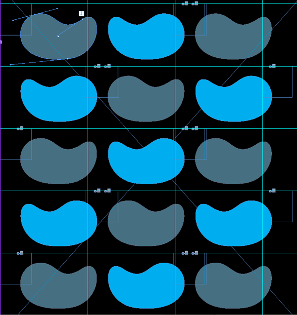 Take note that in the above screenshot effects and transformations are not directly applied to the anchored clones—which would make the links out of sync—but only to their respective containers. When I want to change the global pattern, I just have to operate on the master object in the upper left corner of the screen.